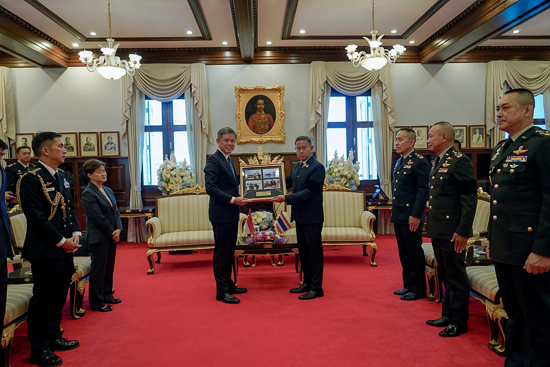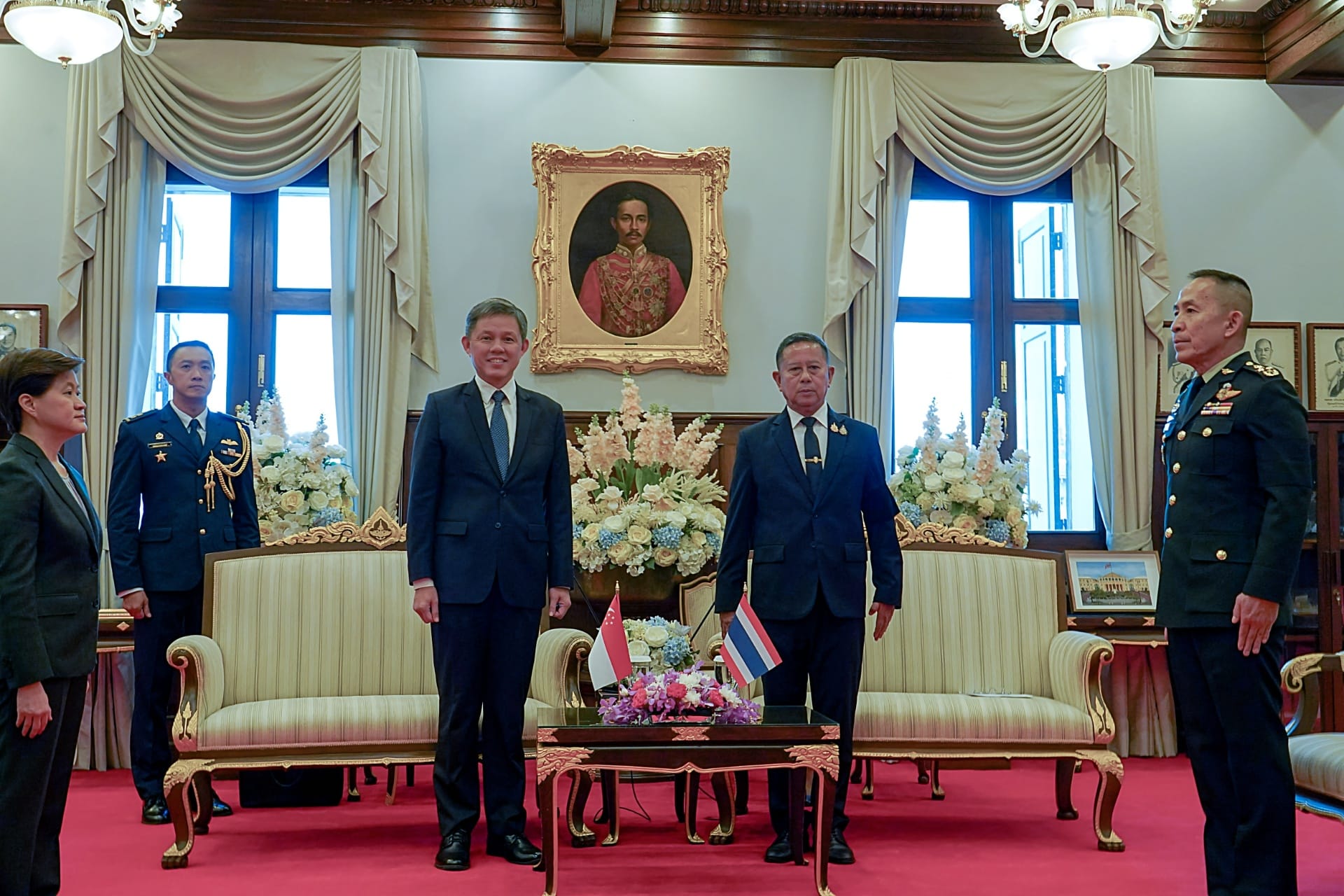 Earlier today, Minister for Defence Mr Chan Chun Sing called on Thai Prime Minister and Minister of Interior Mr Anutin Charnvirakul at the Government House. At the Government House, Mr Chan offered his condolences on the passing of Her Majesty Queen Sirikit The Queen Mother of the Kingdom of Thailand.