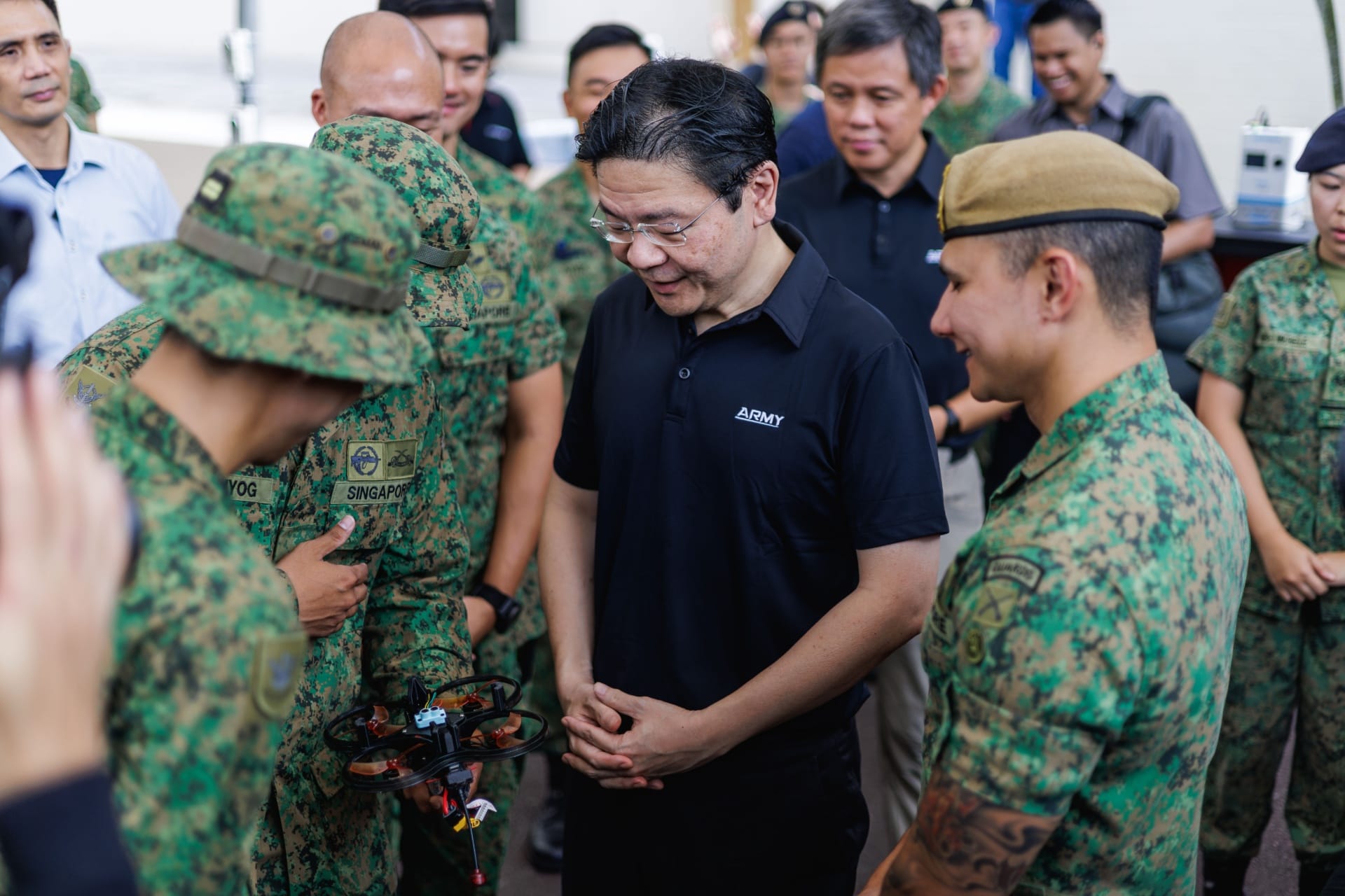 PM Wong was accompanied by Minister for Defence Mr Chan Chun Sing, Chief of Defence Force Vice Admiral Aaron Beng, Chief of Army Major-General Cai Dexian, and other senior officers from the Singapore Army.
